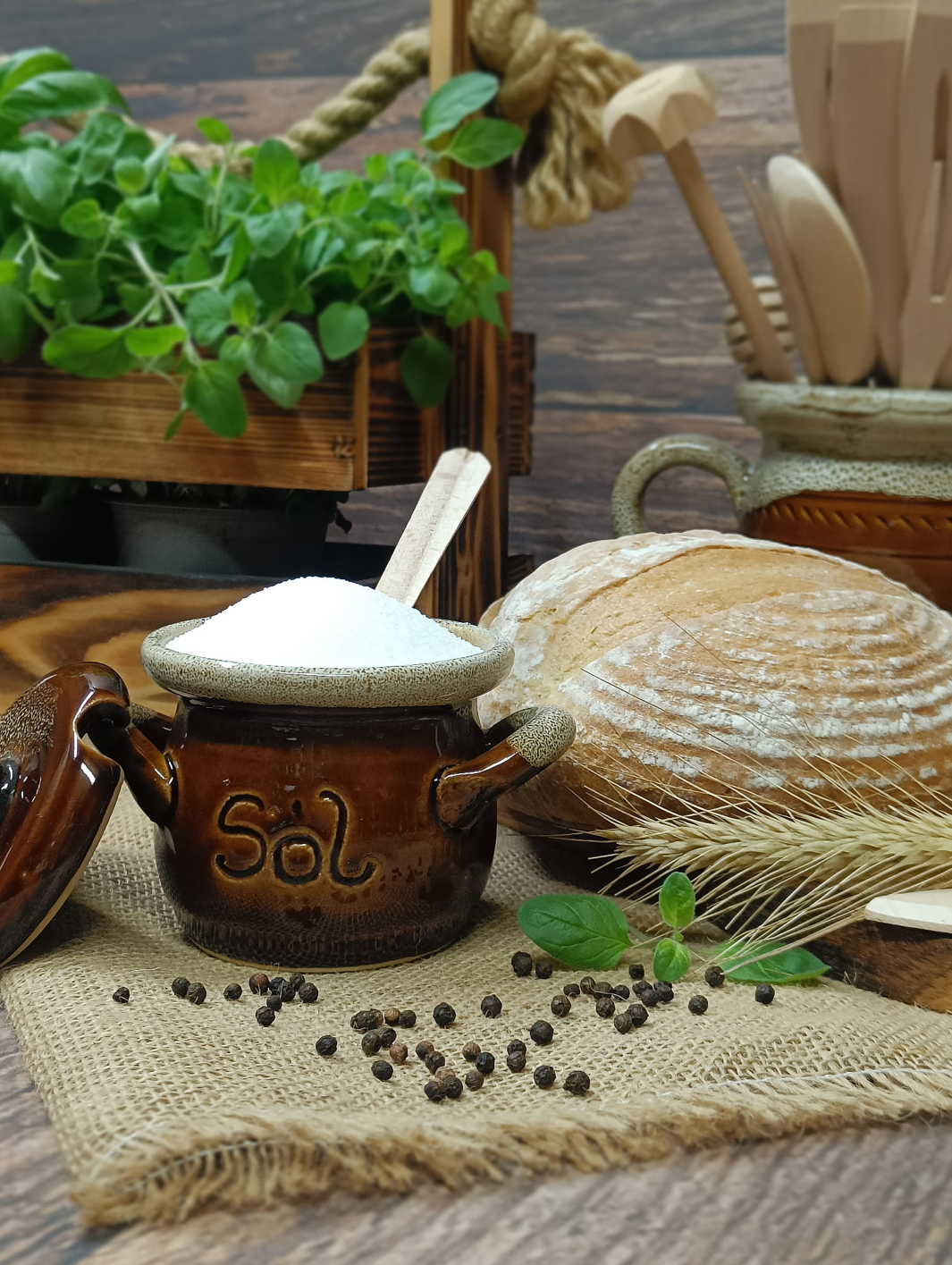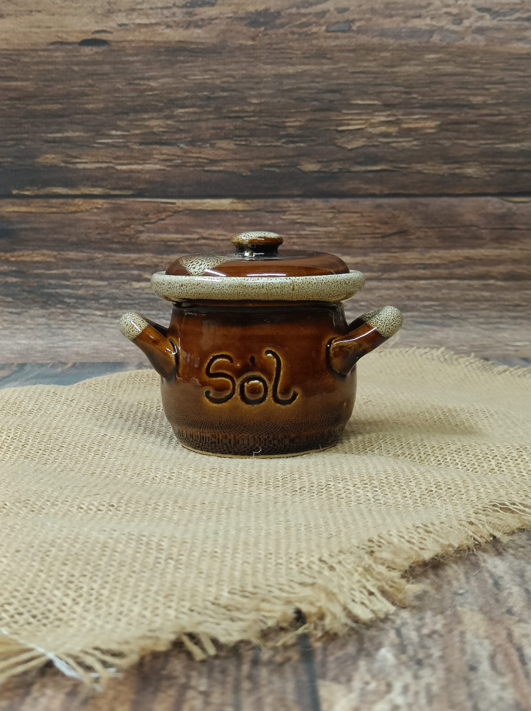 Ten kamionkowy pojemnik na sól to doskonałe połączenie tradycyjnego rzemiosła z funkcjonalnością. Świetnie sprawdzi się w każdej kuchni, dodając jej rustykalnego charakteru i elegancji.